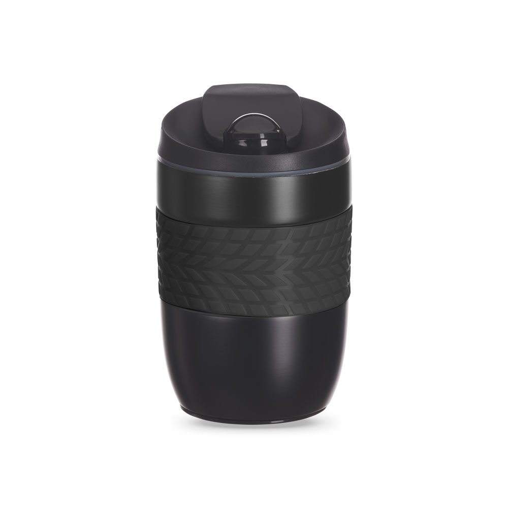 Caneca antiqueda em aço inox parede dupla de 260ml, conserva temperatura quente ou fria, pegador em silicone e bico com tampa. Na parte inferior da caneca existe uma ventosa que por sucção previne possiveis quedas causadas por batidas, choques e colisões.