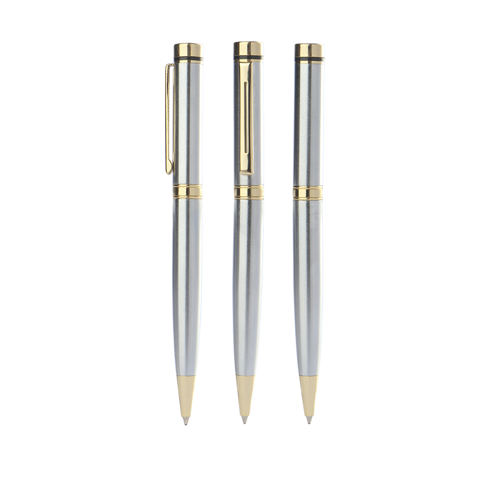 Caneta esferográfica metal com detalhes em dourado