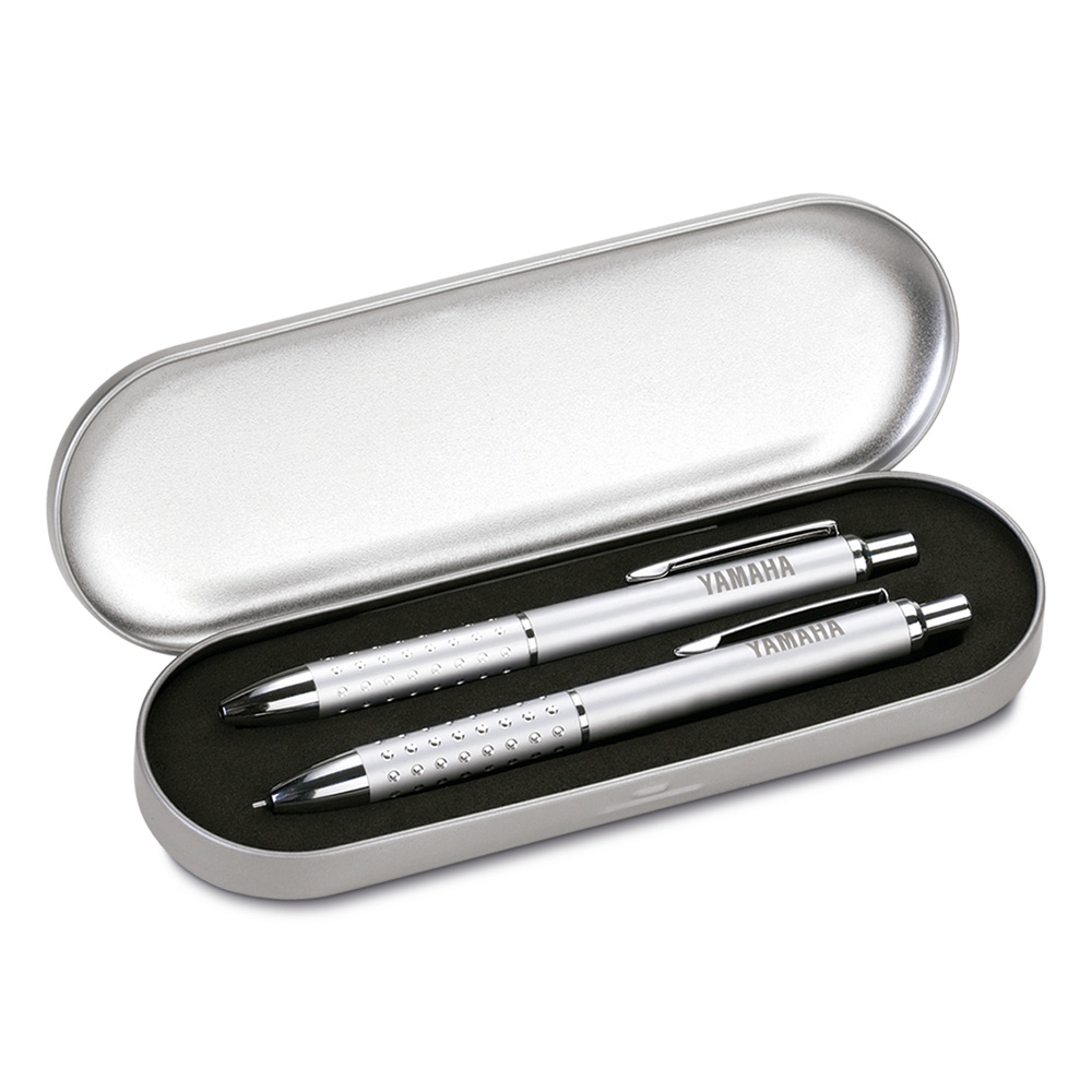 Estojo de metal para duas canetas.Interior em EVA preto.