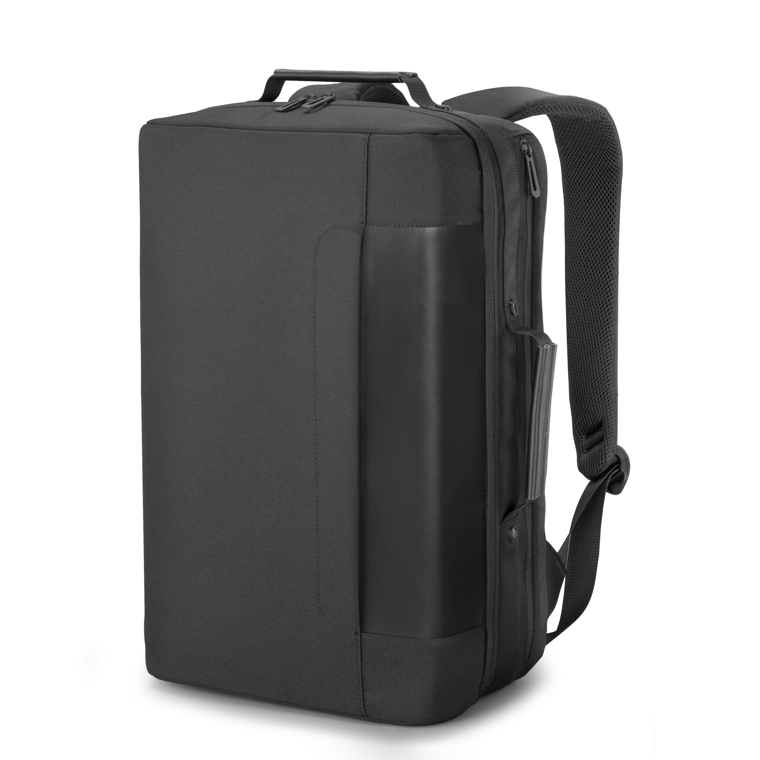 Mochila premium, produzida com poliéster acolchoado, alças de ombro acolchoadas, interior com divisórias, bolso frontal com zíper e na parte das costas uma divisória atrás do engate para mala de viagem, aceita notebook de até 15,6”.